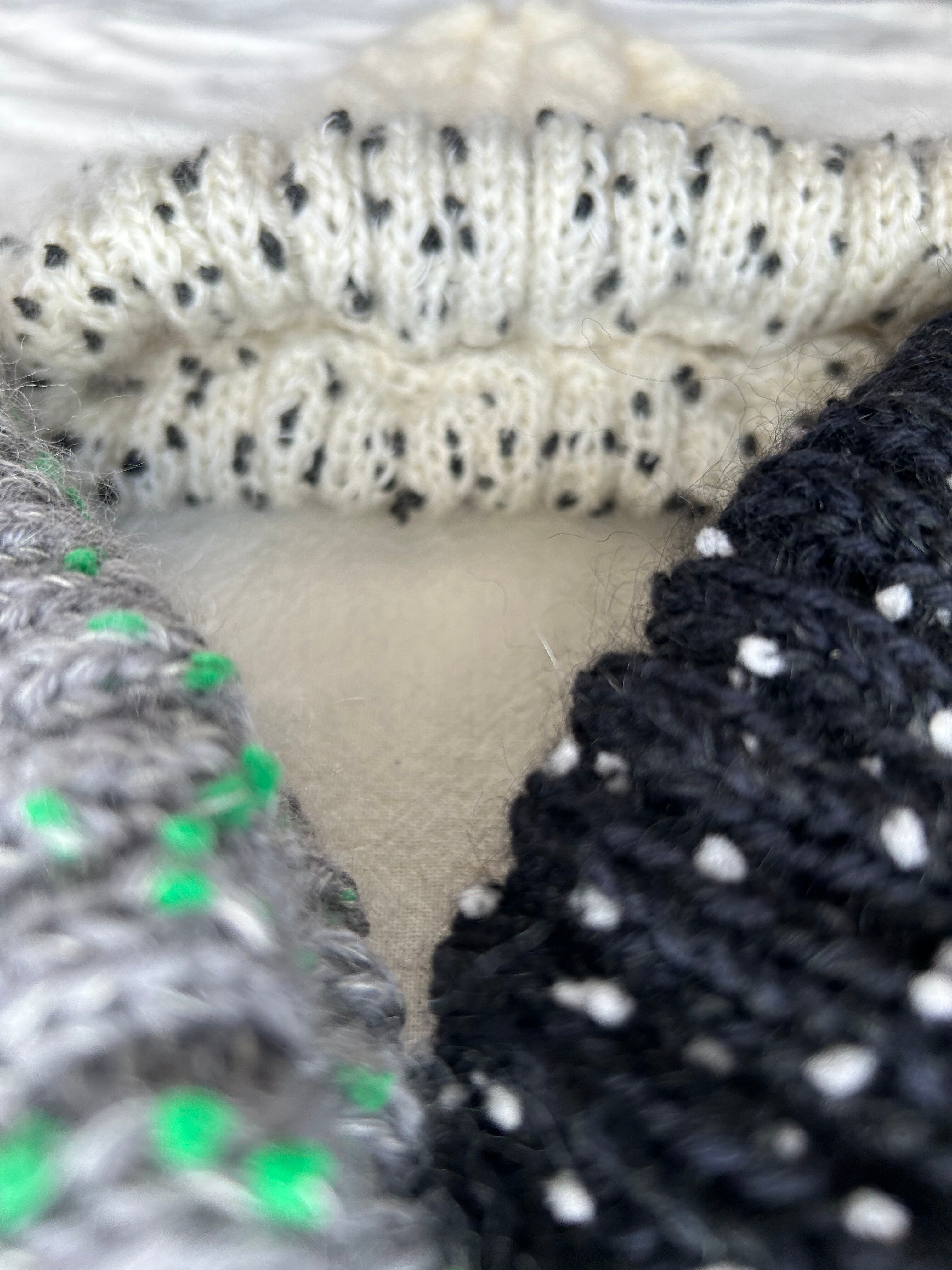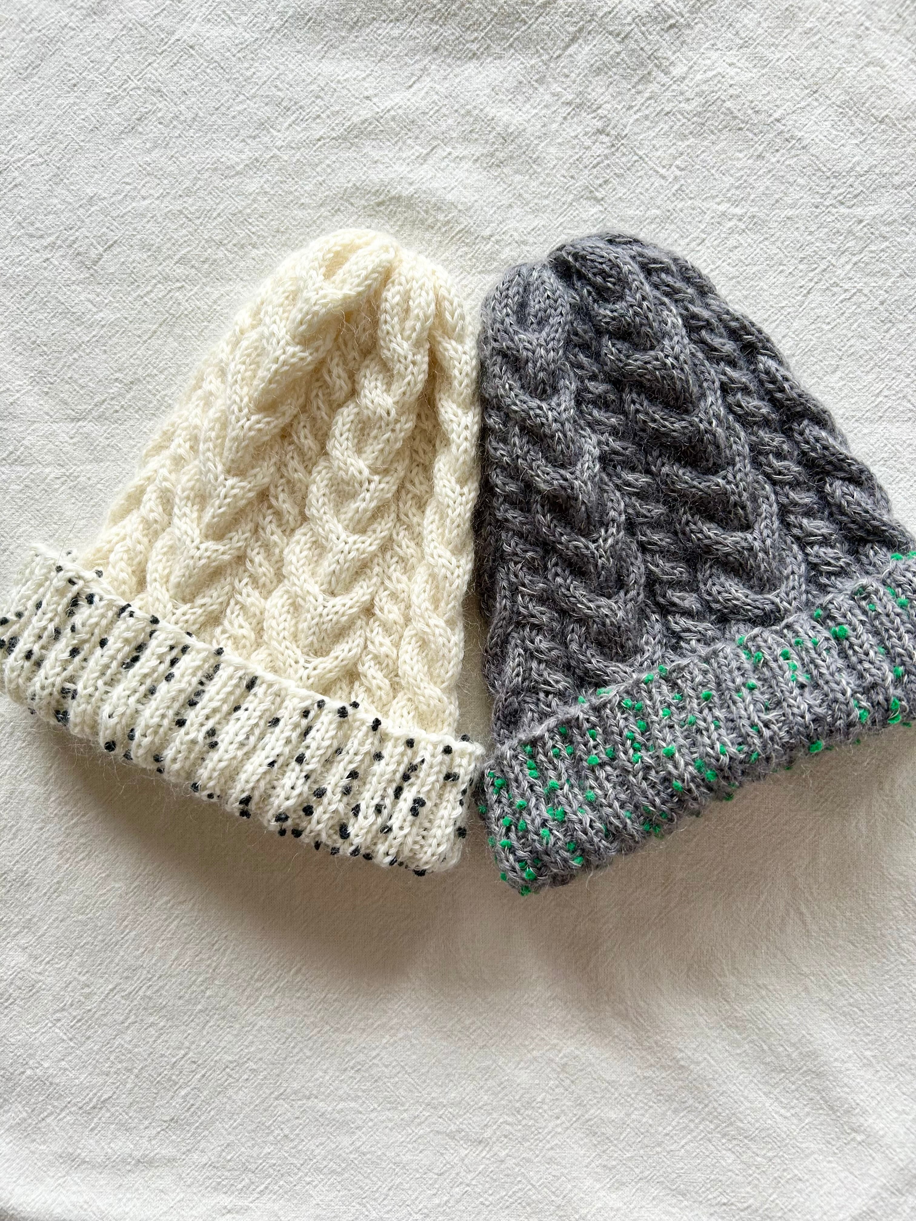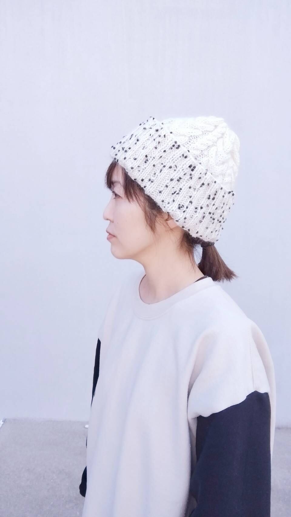 折り返し部分は珍しいドットヤーンをプラスしました!