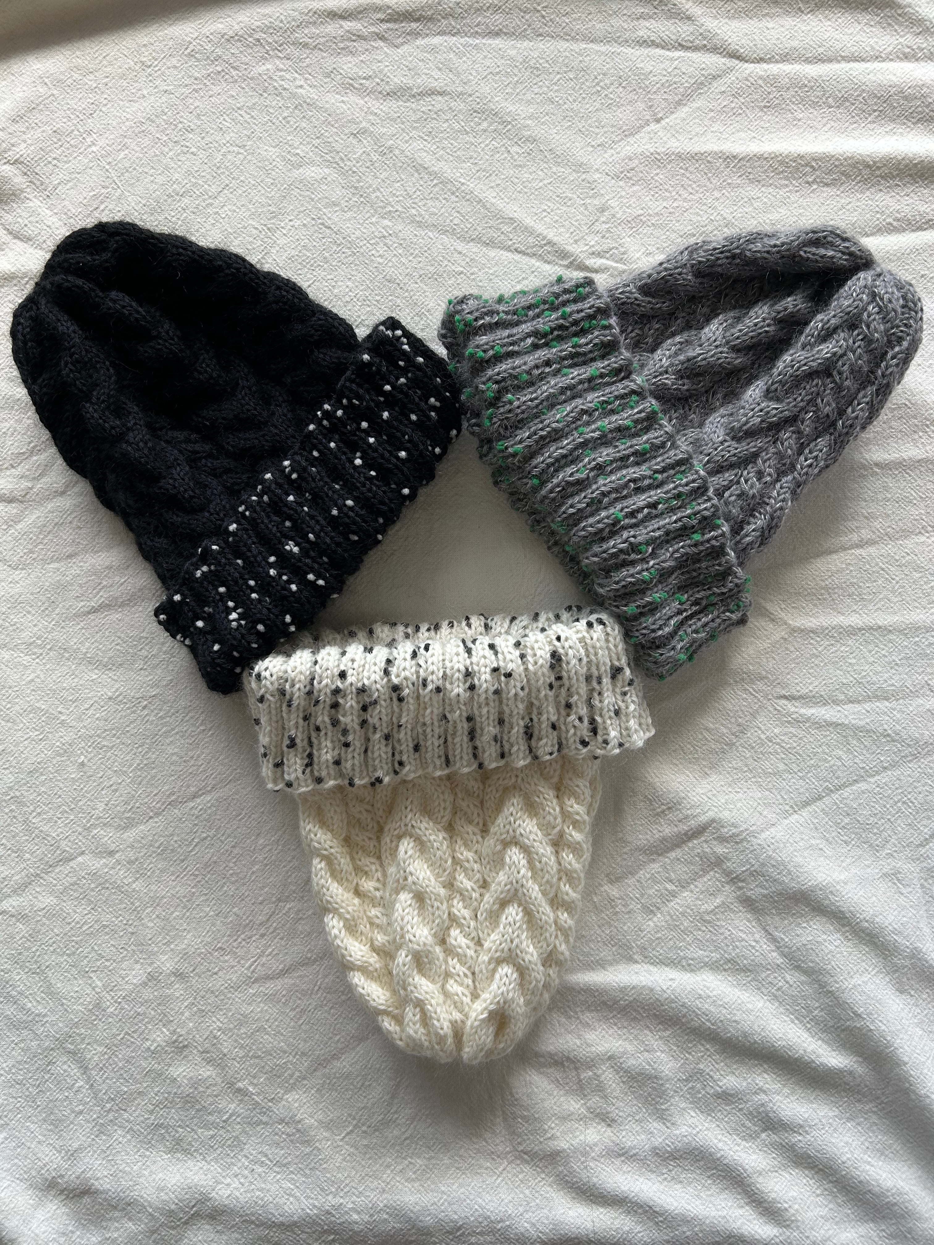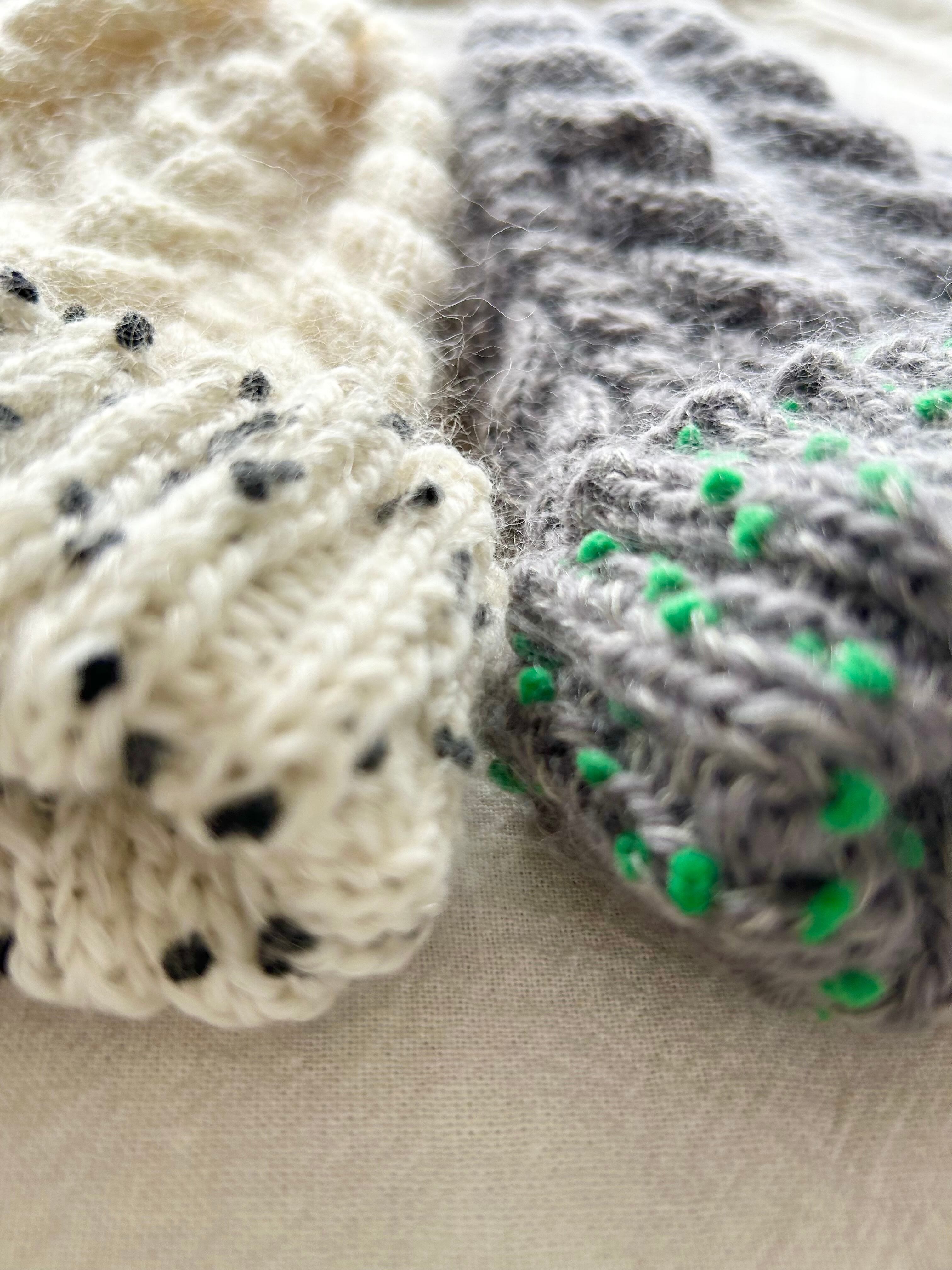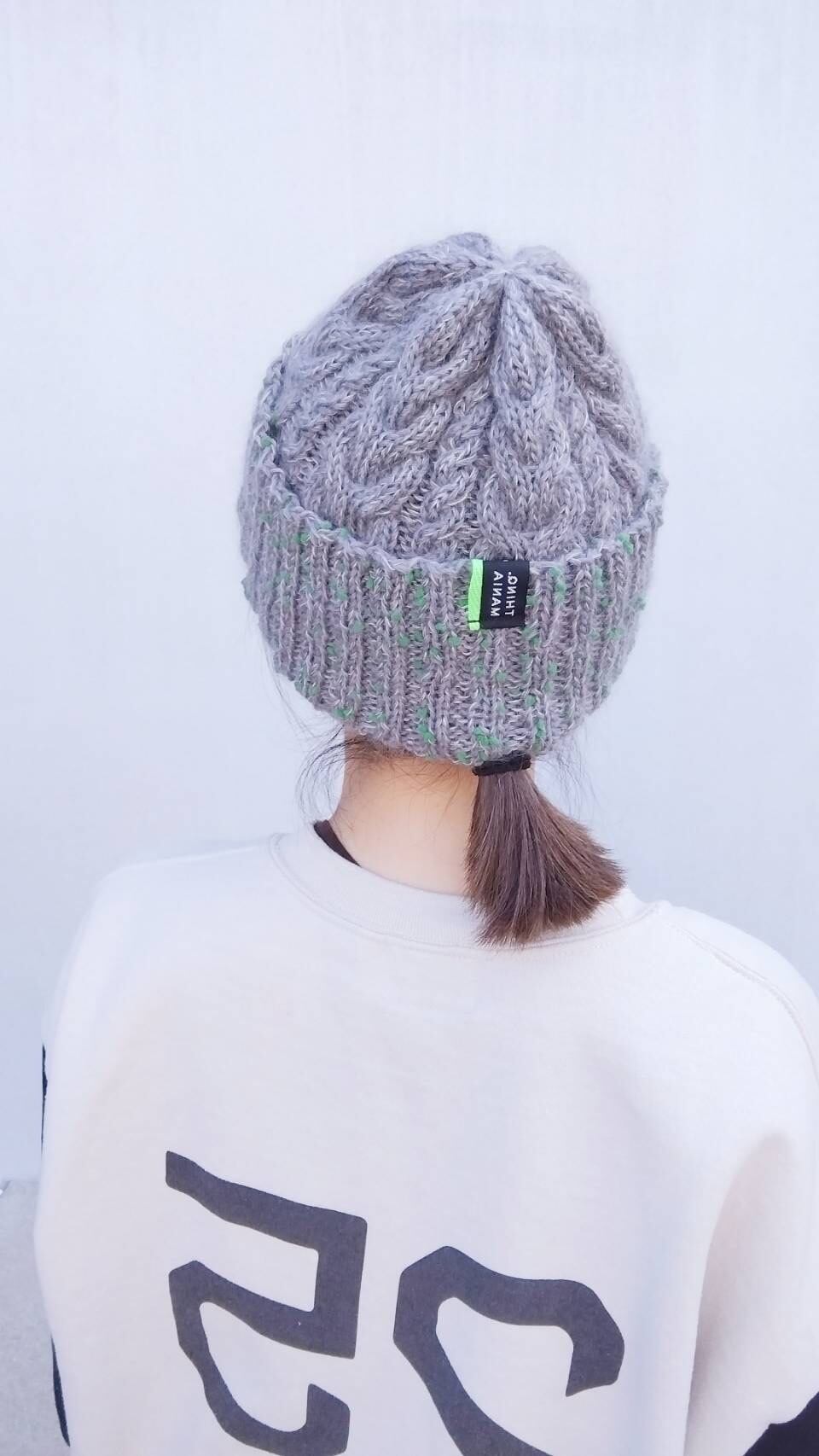 折り返し部分は珍しいドットヤーンをプラスしました!